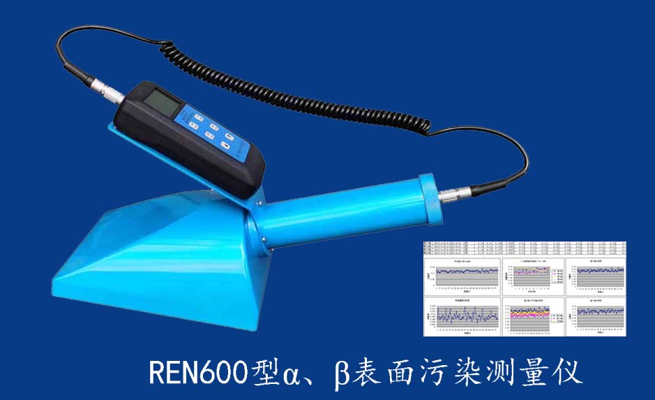 REN600A型α、β、γ射线表面污染仪即可检测α、β、γ射线,也能检测到X射线,它采用高速嵌入式微处器作为数据处理单元,点阵式大屏幕LCD液晶显示,读数清晰、操作方便,具有800条超大容量数据存储。仪器采用进口的大面积MICA盖革探测器,具有较高探测效率,可进行α、β辐射表面污染检测和X、γ辐射剂量率的监测。此外通过配套的RenriCont表面污染管理